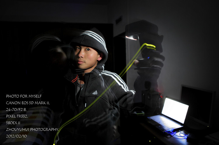 我只是半夜洗完澡后无聊了… 使用设备: 思锐T005微型云台, Canon EOS 5D Mark II, 24-70/2.8L, PIXEL TR332 无线TTL引闪器, 580EX II, YN MC-36R C3无线定时遥控快门线 架上机器,接上 ...